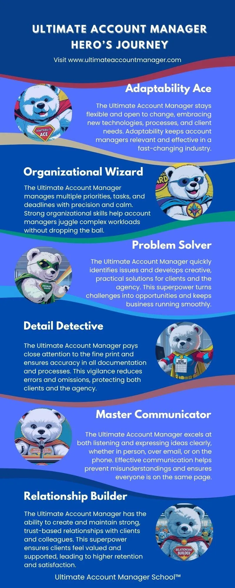 By enrolling your account managers in THE ULTIMATE ACCOUNT MANAGER school, you're not just investing in employee development - you're investing in your agency's future success.